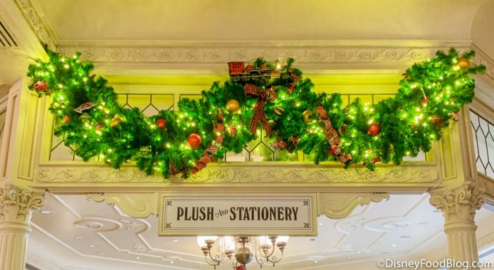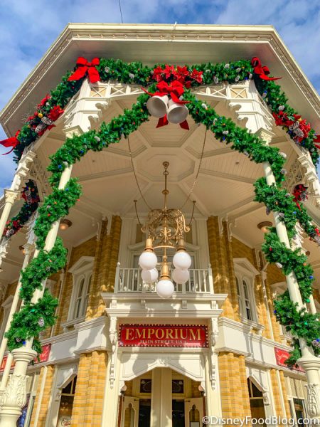 The decorations feel like they’re almost welcoming everyone into the Magic Kingdom to do their Christmas shopping!