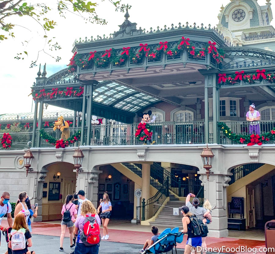 When guests first arrive to Main Street, U.S.A., they’re greeted by the bows and garlands on the decked out train station…