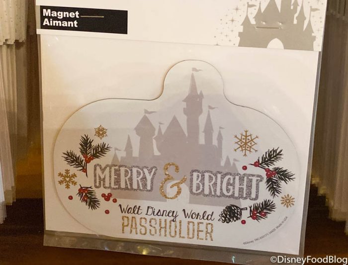 We were checking out the offerings in EPCOT’s Annual Passholder-exclusive shop when we spotted an all-new holiday collection. Last week we spotted some other holiday Passholder merch. Now we’ve spotted the Merry & Bright Passholder line! We can’t wait to add this Merry & Bright Passholder Magnet to our cars for $14.99.