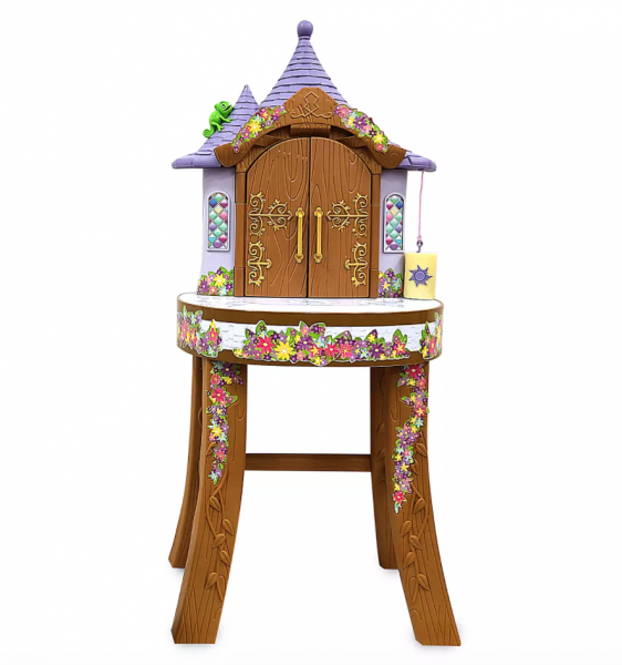 The Rapunzel Vanity Tower Play Set looks like something taken straight out of Disney’s Tangled. The legs for the table and chair look like they could have been carved from the trees in the forest surrounding Rapunzel’s tower. (Can you spot a little green friend Pascal on the roof?)