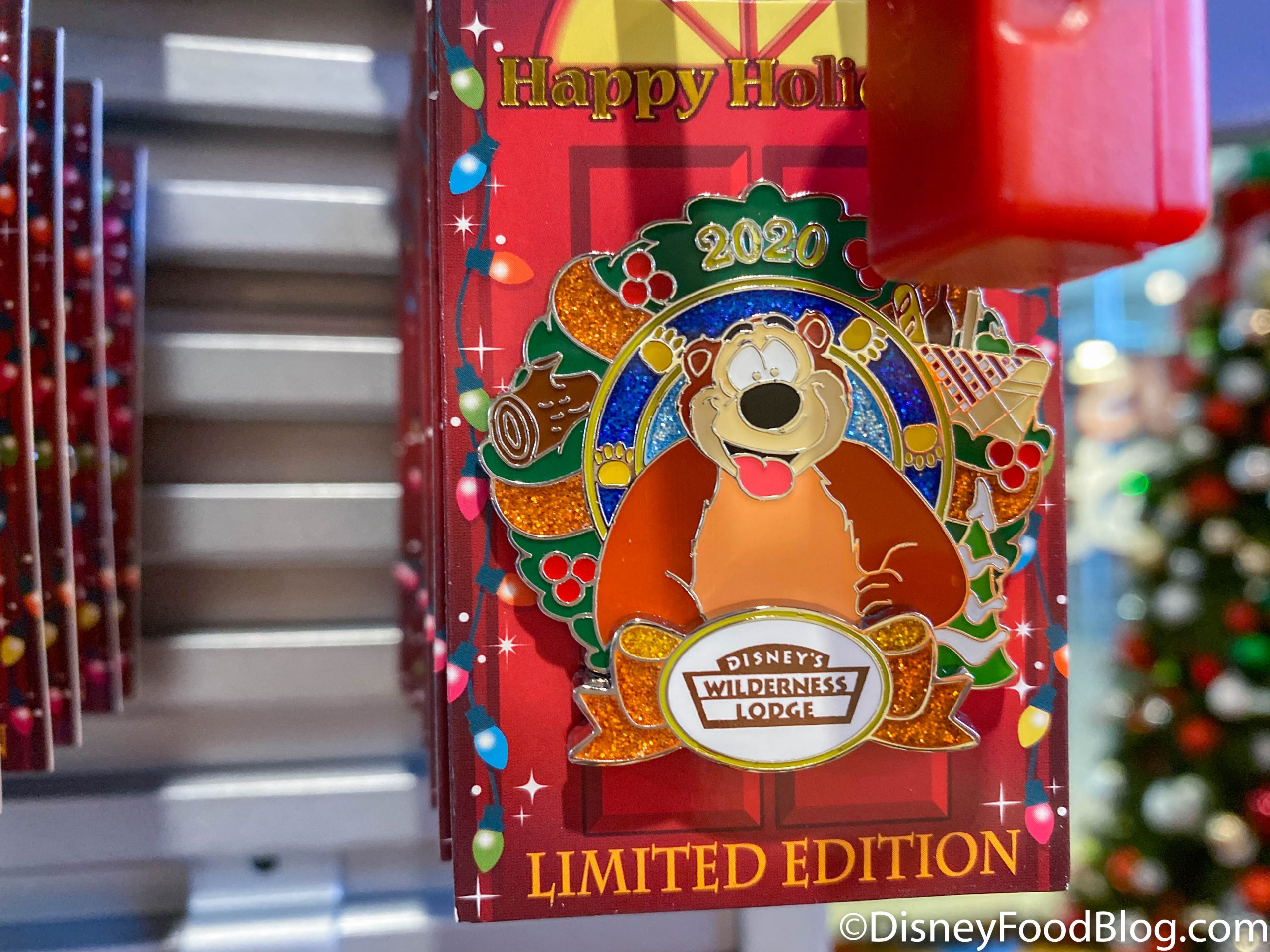 We also spotted this holiday pin for Disney’s Wilderness Lodge with Humphrey the Bear…