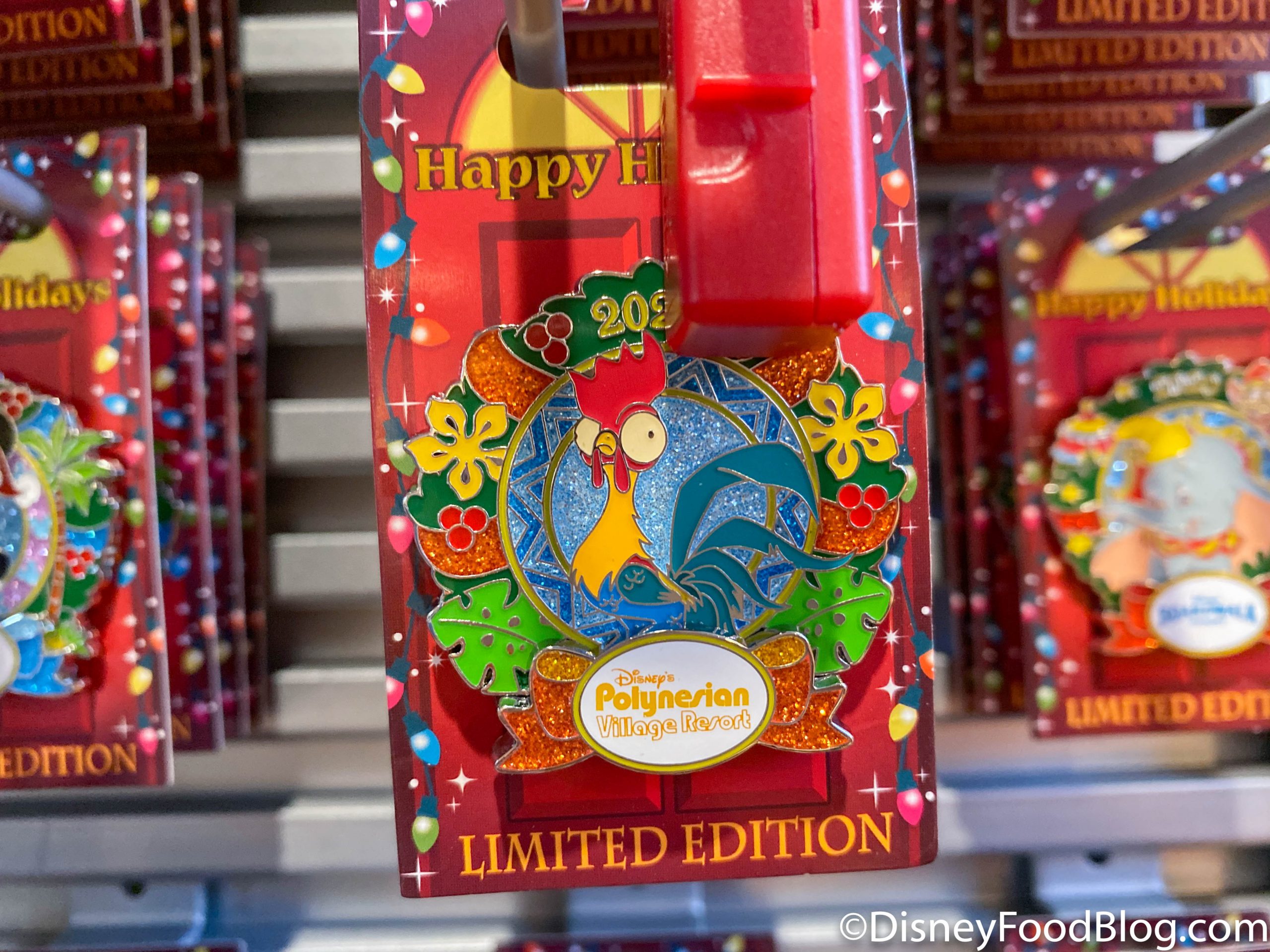 To commemorate your stay during the holiday season at Disney’s Polynesian Village Resort, you can grab this adorable Hei Hei pin!