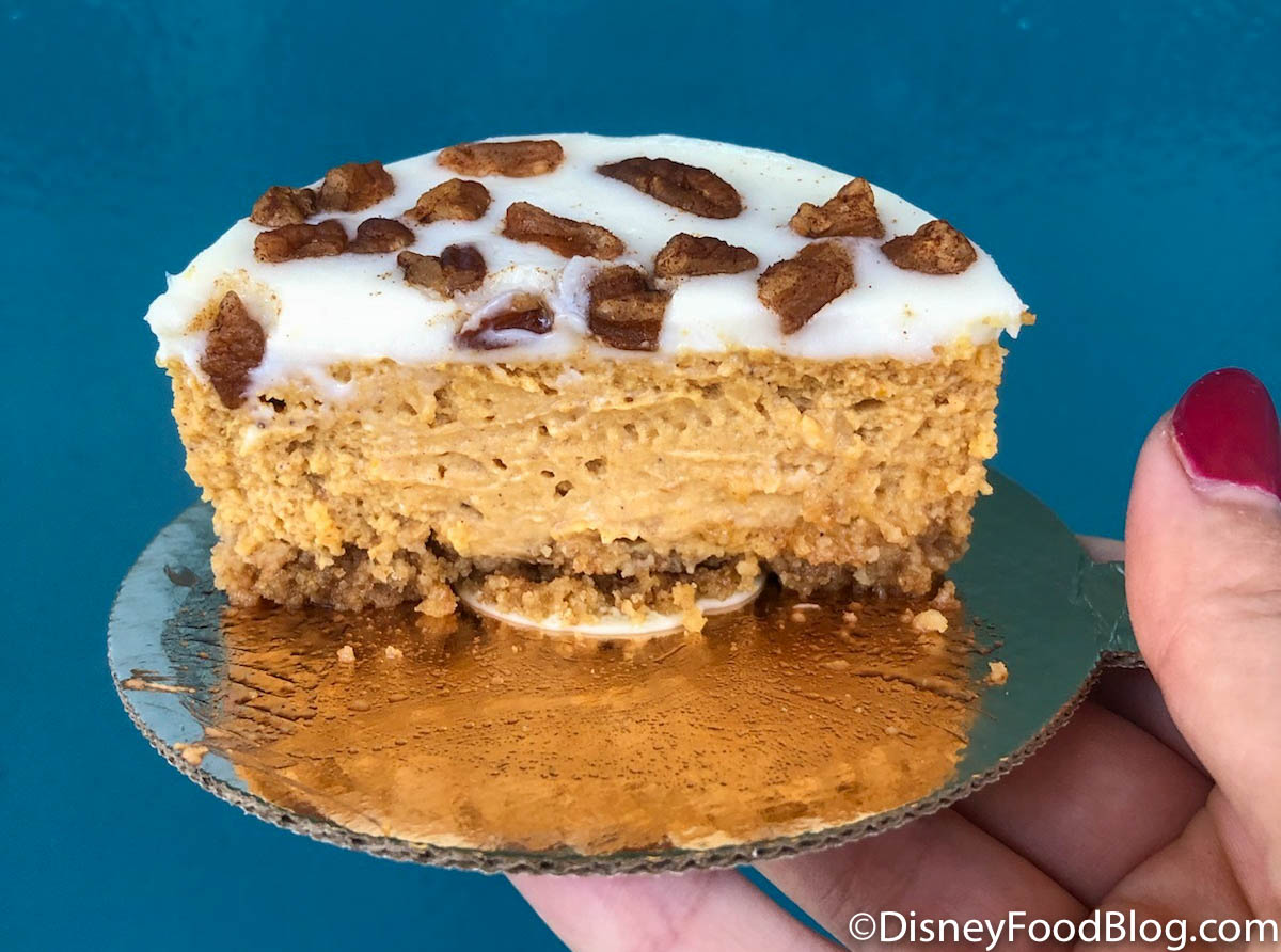 Over at The Artist’s Palette in Disney’s Saratoga Springs Resort we found the NEW Bourbon Pumpkin Cheesecake with a graham cracker-like crust, bourbon sour cream topping, and spiced pecans!