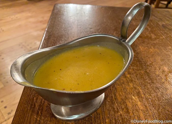 Speaking of gravy, here’s a close-up of that beautiful, flavorful gravy. Yep, even with our meager party of one, we were served enough gravy to feed a small army. We couldn’t help but chuckle at the thought of consuming THAT much gravy during our meal. Liberty Tree has always been quite generous with the gravy. It was more like a bowl of soup in size! Pour it on just one thing, or just pour it over everything!