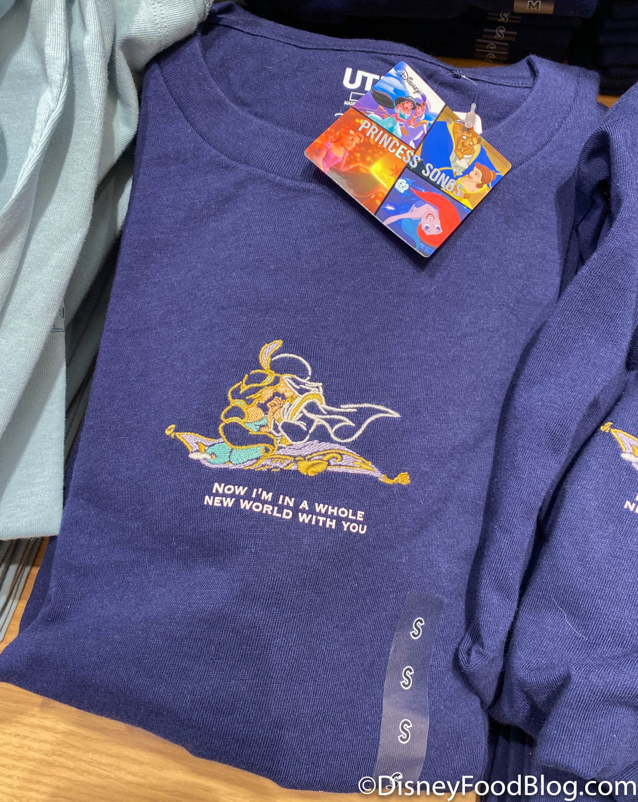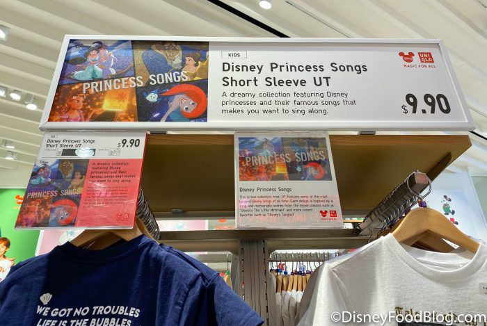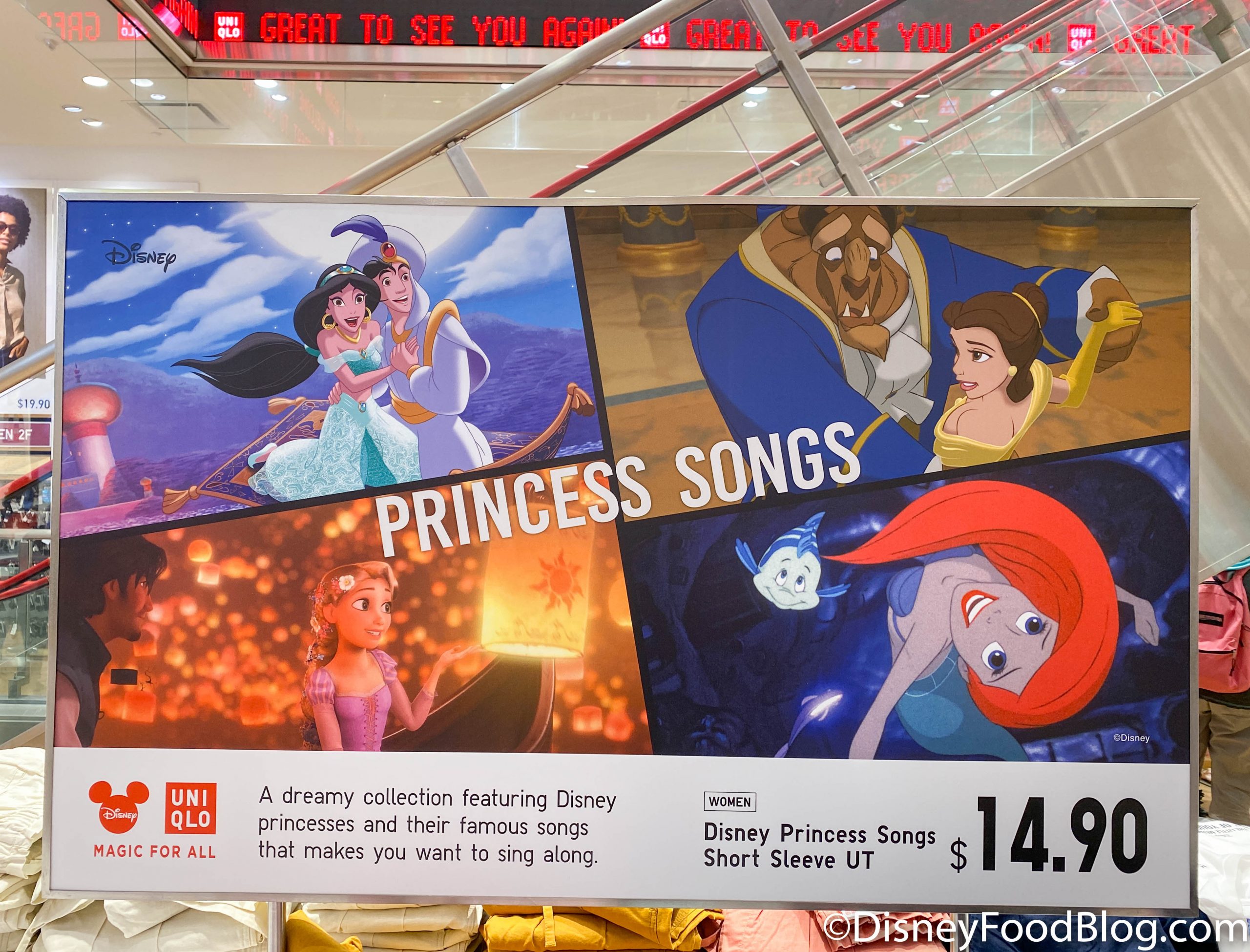 Finally, we ended our Disney Springs trip with a visit to Uniqlo. It seems there’s always something cool to see here! During our most recent stop at this store, we spotted a whole NEW Disney Princess Songs Collection celebrating some of our favorite princesses and their signature songs.