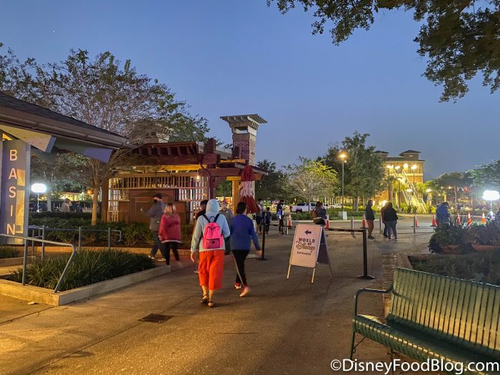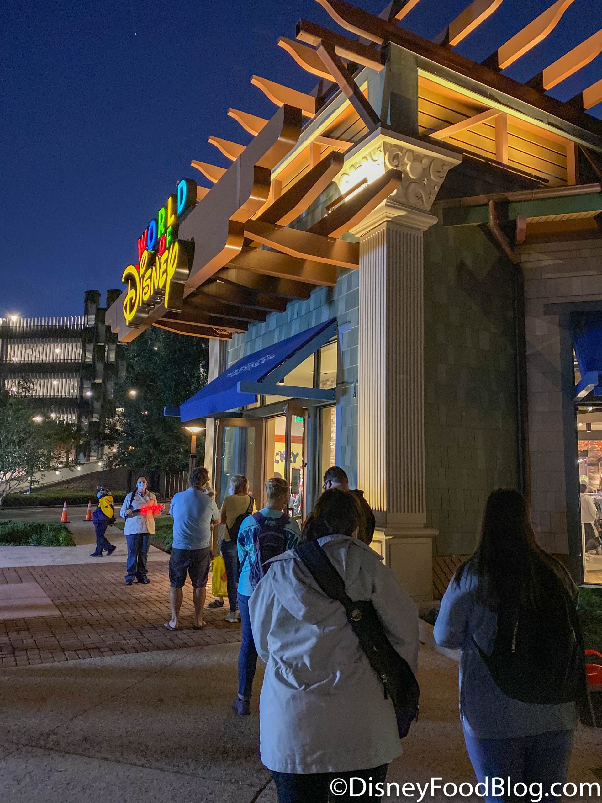 First, let’s head over to World of Disney (a store big enough to TOTALLY get lost in) and see what new things we spotted. One strange thing we noticed is that we were routed a rather unique way back near Basin to get to the line to get into the store.