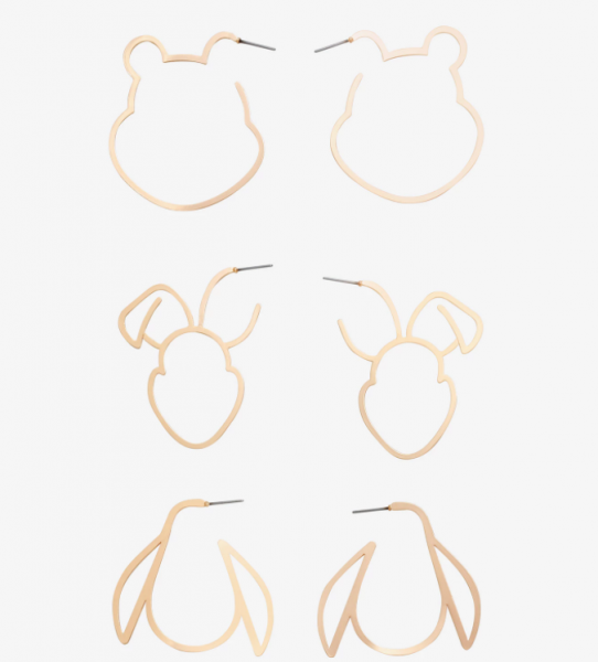 The earrings come in a set of 3 pairs and feature the silhouettes of Pooh, Piglet, and Eeyore. We will definitely NEED to add these to our jewelry boxes for $12.90!