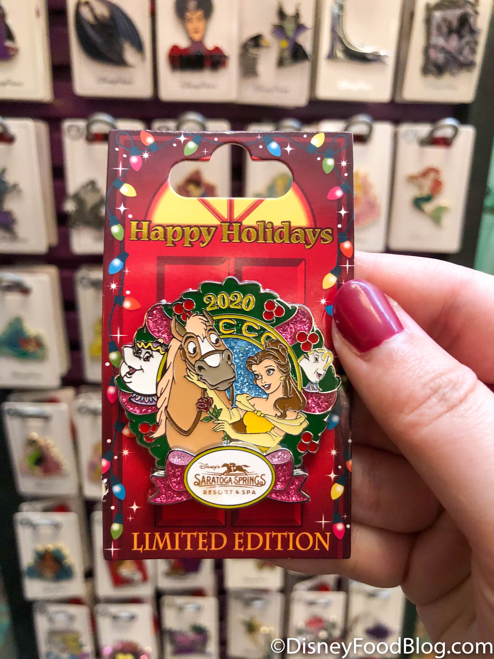 Looking for those 2020 hotel holiday pins? Well, if you’re staying at (or just love) Saratoga Springs, you can stop by the gift shop there to get the Saratoga Springs 2020 holiday pin!