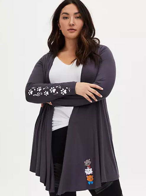 The open-front cardigan features pawprint and music note details on the sleeve and the mischievous kittens on the front. For $69.50, you can add this piece to your closet and subtly represent a Disney classic in your everyday look.