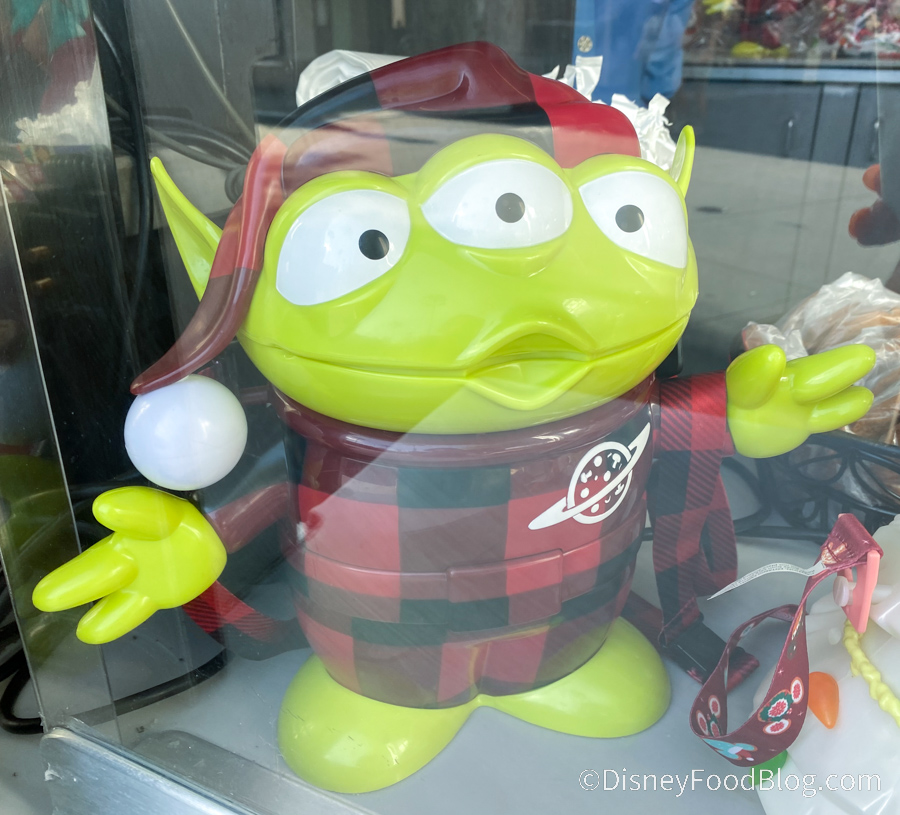The Buffalo Plaid Alien Popcorn Bucket is BACK! And he’s still as adorable as ever in his red plaid pajamas and matching hat!