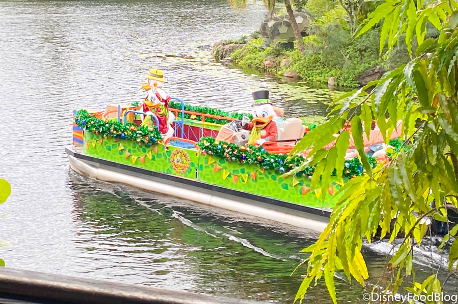 As you can see, the Discovery Island Drummers are still sailing by but their boat has new Christmas decorations!