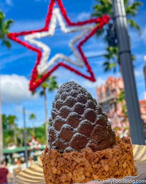 Plus, it’s just too cute and deserves its own photoshoot with the decorations around Disney’s Hollywood Studios! You can find the Chocolate-Chestnut Praline Pine Cone throughout the holidays in Studios for $6.99 before you watch some of the new Christmas Cavalcades on Sunset Boulevard!