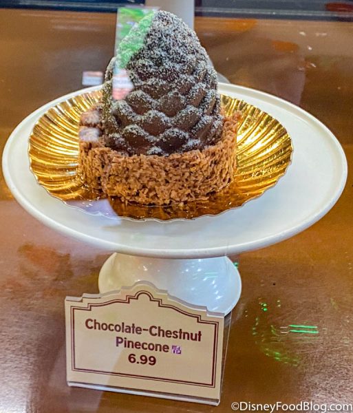 The Trolley Car Cafe is home to Starbucks drinks in Disney’s Hollywood Studios and a few seasonal goodies that pop up throughout the year. While we were grabbing our first Chestnut Praline Latte of the year, we saw that the Chocolate Chestnut Pine Cone was sittin’ pretty in the bakery case again!