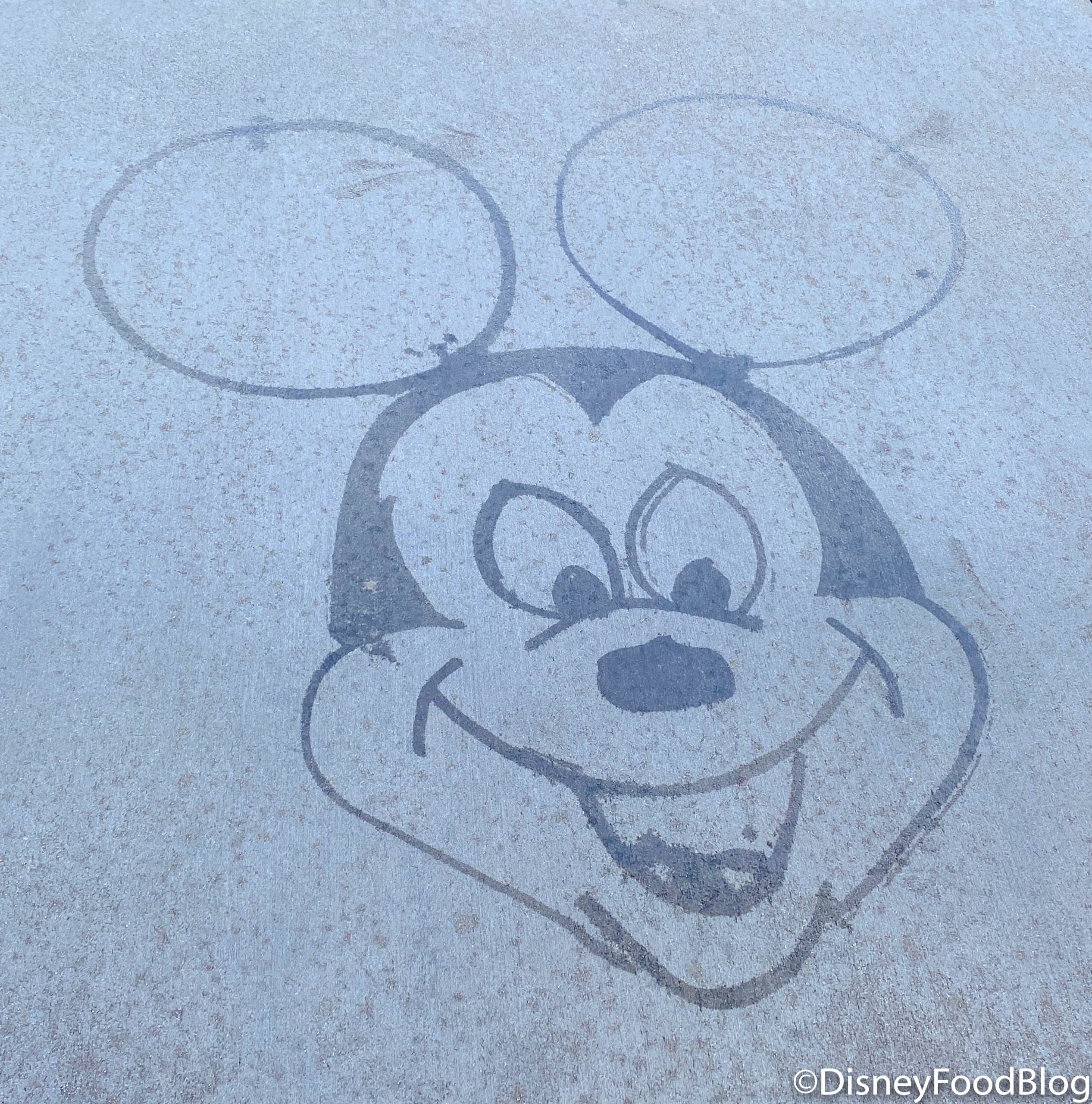 As we were making our way around Tomorrowland (and to shamelessly ride Buzz Lightyear Space Ranger Spin multiple times), we spotted a custodial Cast Member being trained to create character water art!