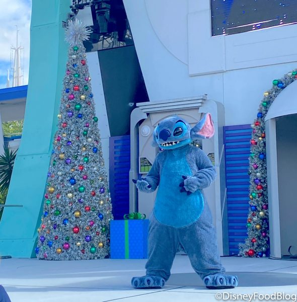 Although there are plenty of characters to see during the cavalcades, Stitch was greeting guests with his hilarious antics over at the Tomorrowland Stage! He looked pretty happy to see all of us (and we were thrilled to see him too)!
