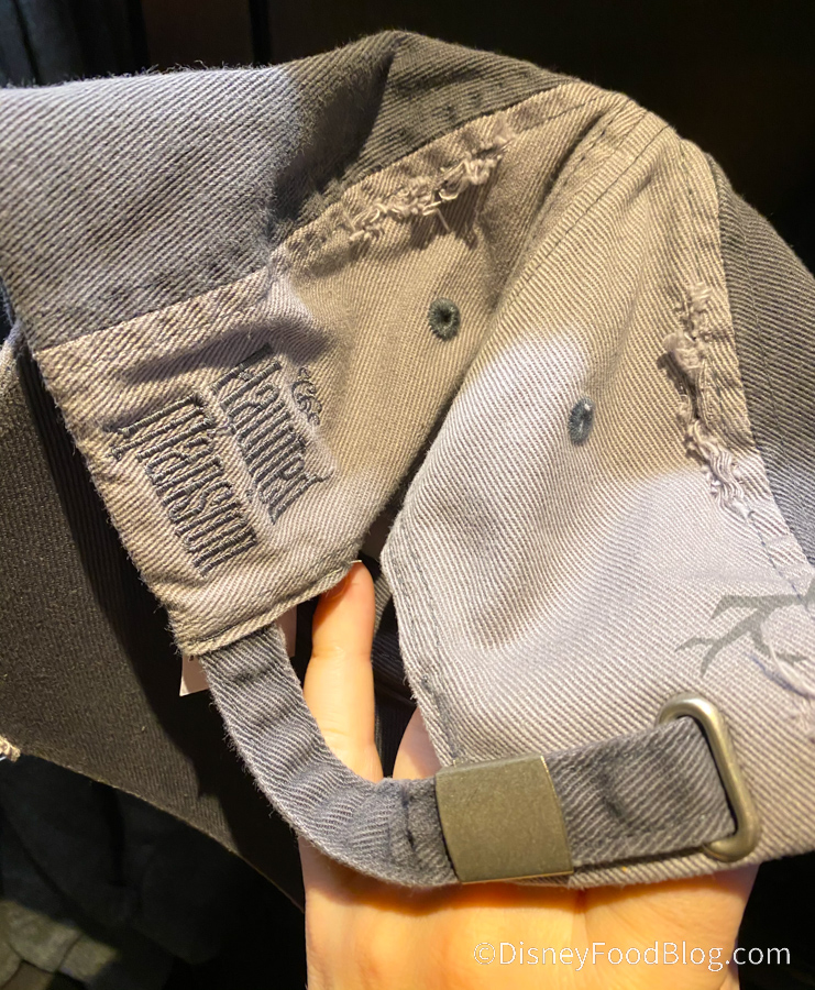 The back has an adjustable strap and the Haunted Mansion logo.