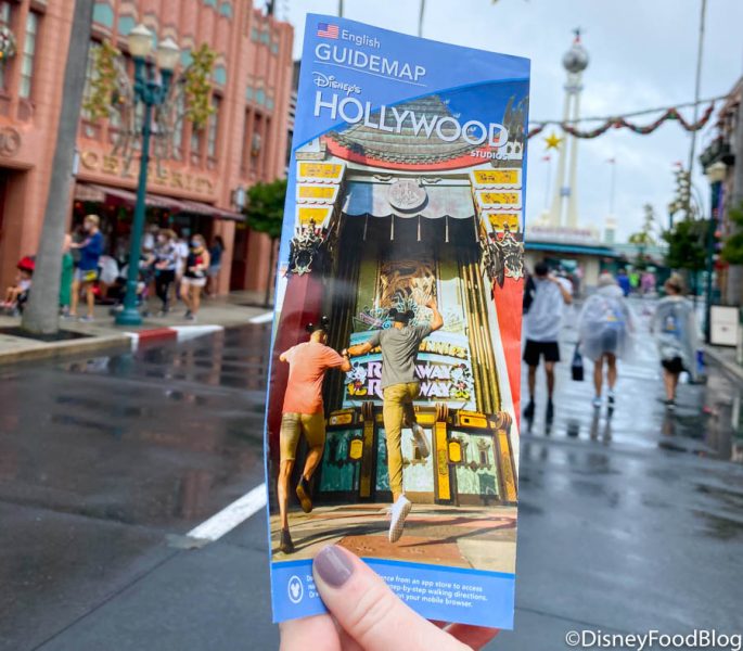 We typically use the My Disney Experience app for all our getting-around-the-park needs, but sometimes we like to grab physical park maps. They make great and FREE souvenirs! Today, we noticed that the Hollywood Studios map had a new picture on the front!