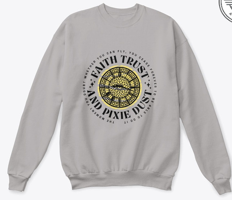 But wait, there’s more! The You Can Fly! Sweatshirt also makes use of the “faith, trust, and pixie dust” quote!