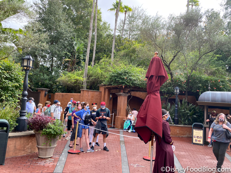 The new physical distancing guidelines have been implemented everywhere from the seating in restaurants to every attraction queue in Disney World. Groups are spaced out 6 feet apart from others, which usually makes the ride lines look twice as long. The lines for popular attractions end up extending all over the theme parks. Disney has been adjusting to the extended lines with new queues for certain rides.