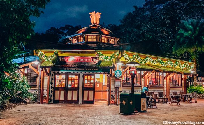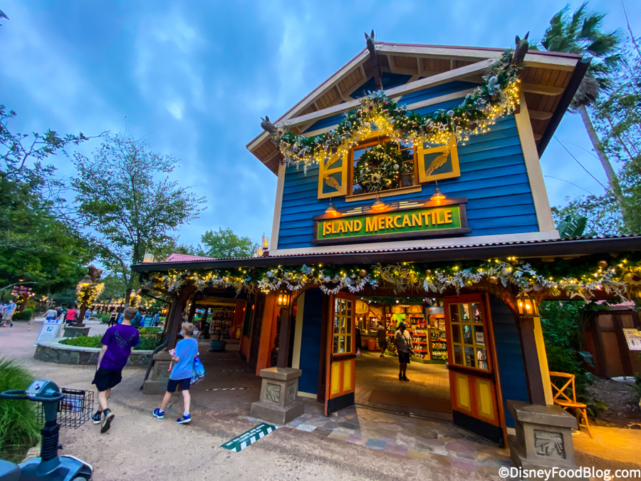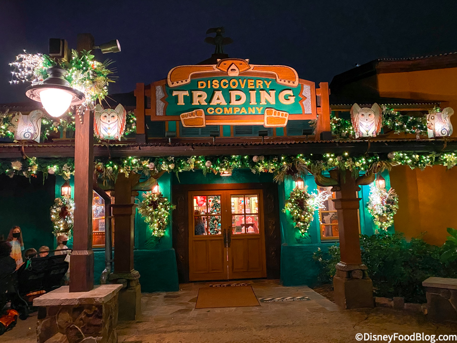 Over on Discovery Island, there were plenty of new decorations to check out! Island Mercantile was all decked out in garland, wreaths, and lights.