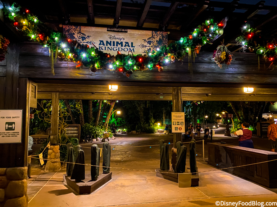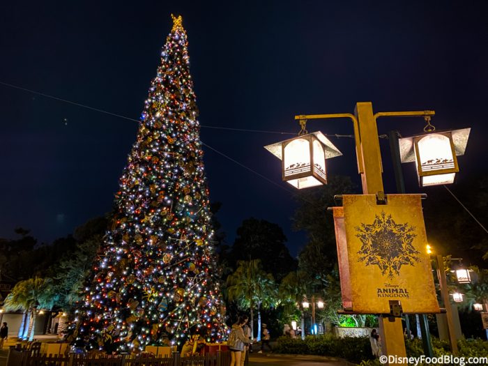 The decorations, the lights, the Christmas-y music — it all just really sets the mood for a fantastic holiday season! This last week we saw holiday decor arrive all around Walt Disney World and festivities begin, and we couldn’t be more excited! Today, we’re sharing our photos from a trip to Disney’s Animal Kingdom at night to check out what their decor looks like after dark.