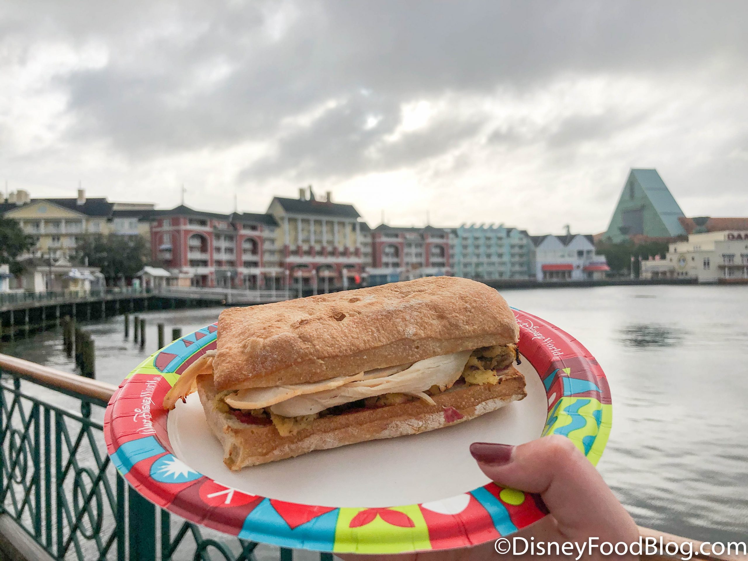 What would we change about this sandwich? Honestly, NOTHING! It was so delicious! If you love Thanksgiving food, this is an awesome option for you to grab for lunch. Then you can sit down on the BoardWalk and enjoy it while taking in the beautiful view. If you’re going to bring this sandwich back to your room or save some for later, you’ll want to put a note on it to make sure no steals it from you (although that didn’t save Ross — Friends fan know what we’re talking about here).