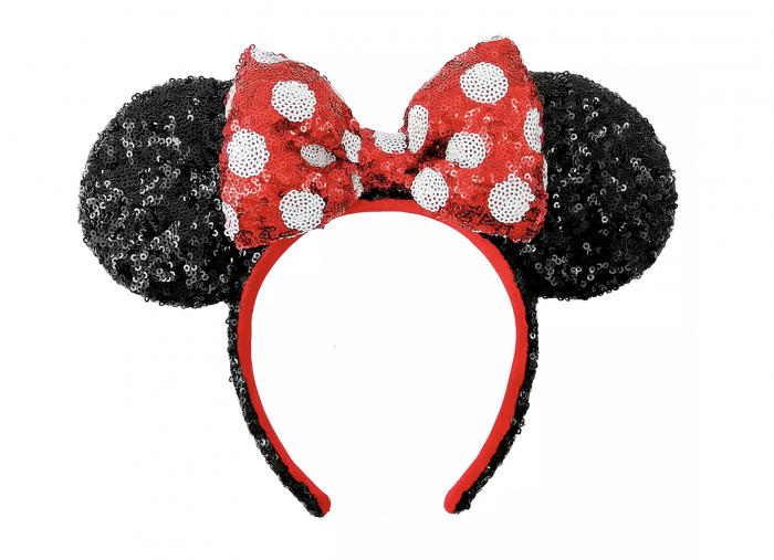 The sequined Minnie Mouse ears feature her signature red and white polka dot bow. You can purchase the timeless pair of ears for $29.99.