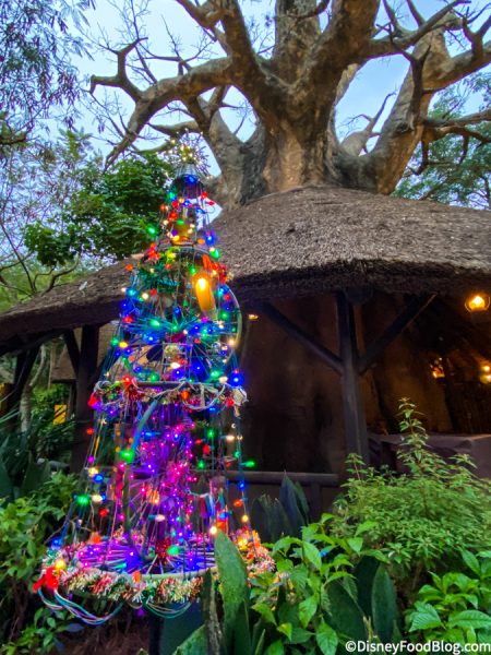 We also spotted beautiful trees, wreaths, and garland up in the Africa section of the park…