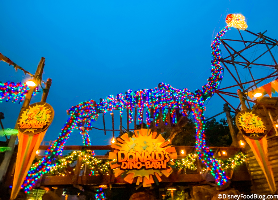 We also spotted some gorgeous lights all over DinoLand U.S.A.! There’s nothing quite like seeing our dino Santa friend all lit up for the holidays!