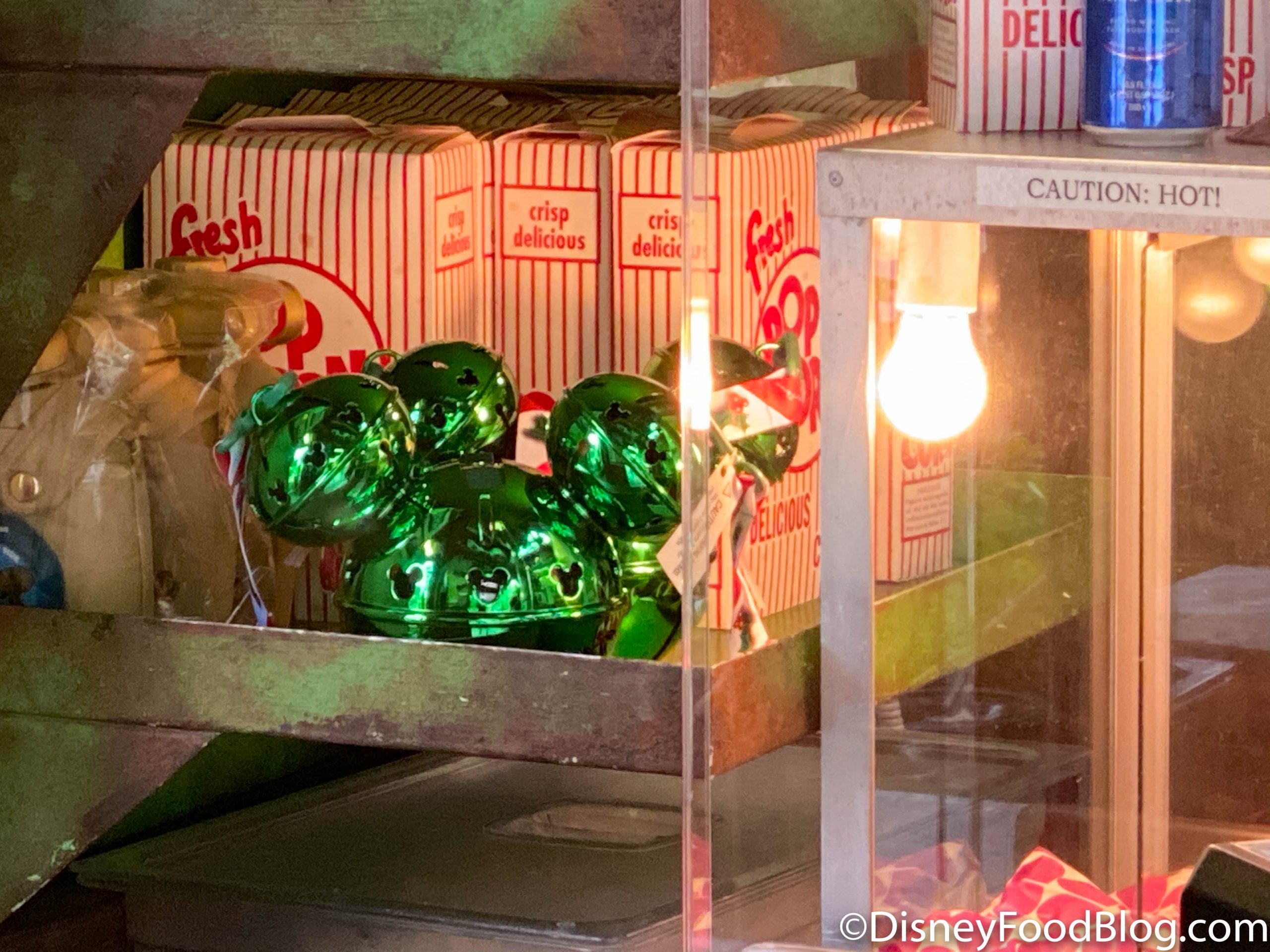 In terms of the popcorn carts, we didn’t really see any new popcorn buckets at them. We did, however, notice that many of the carts were carrying the green Jingle Bell sipper along with the peppermint straw.