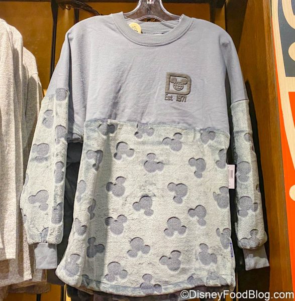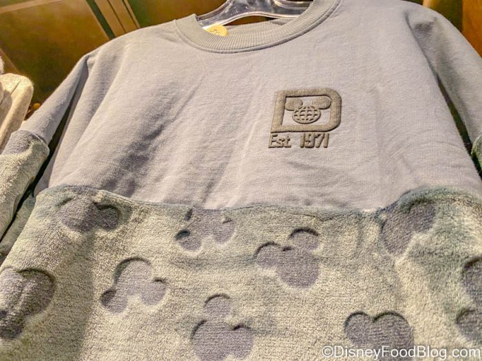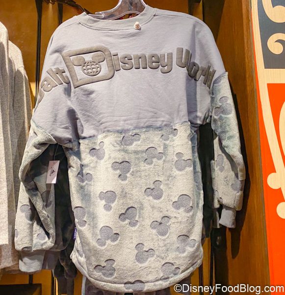 We spotted this new jersey at BouTiki at Disney’s Polynesian Village Resort. On the front, it’s got the traditional logo atop a gray-colored background. The bottom half of the jersey is a fluffy material, covered in Mickey icons!