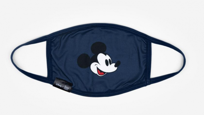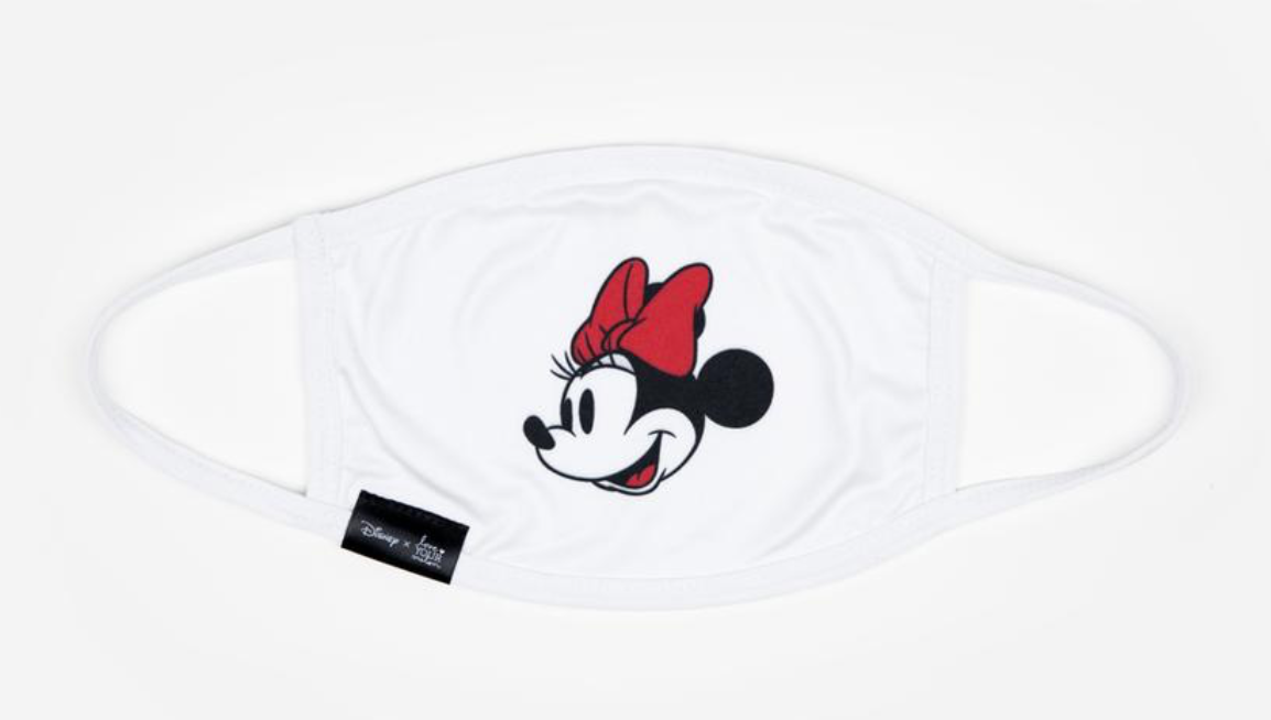 The reusable, washable face masks are 100% brushed poly and currently come in four colors (burgundy, navy, white, or black) with a sublimated Mickey Mouse or Minnie Mouse design.
