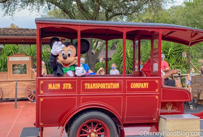 Later in the day, we got the chance to spot a second cavalcade — the rainy day version of Mickey’s Holiday Cavalcade! Mickey led the way in his holiday suit, smiling and posing for the camera.