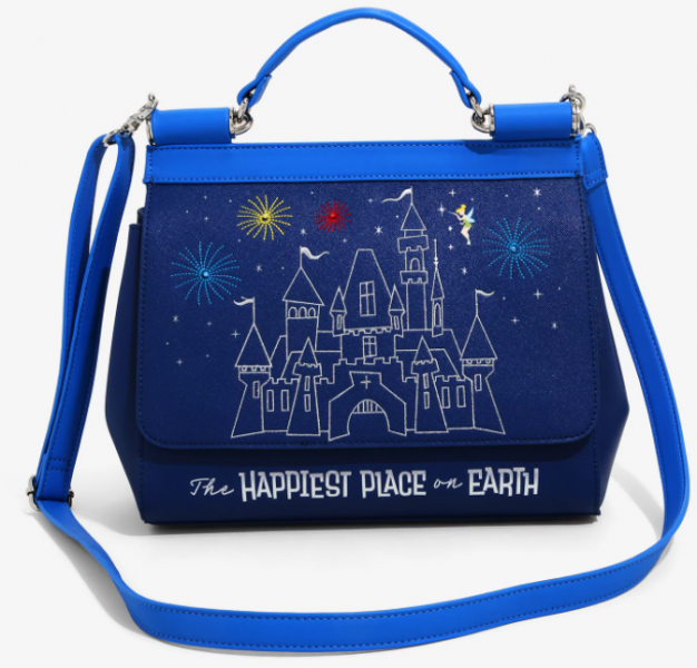 Next up, we have the Happiest Place on Earth Handbag! This blue faux leather bag features an embroidered design of Sleeping Beauty Castle with a colorful fireworks display. The bottom of the bag says “The Happiest Place on Earth” and the interior of the bag features a red character print lining.
