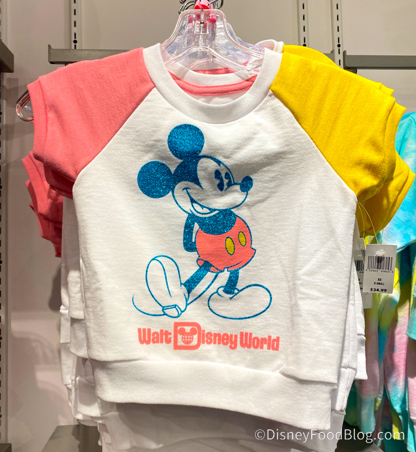 We also found a colorful short-sleeved Mickey Mouse Sweatshirt for Kids. This sweatshirt is $24.99.
