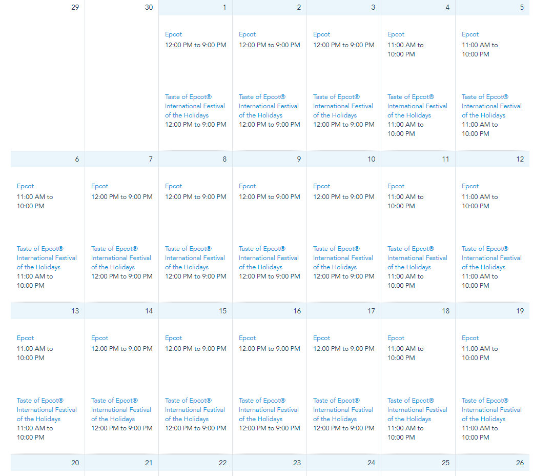 Disney World has already extended hours for its parks for some dates in November, but we just noticed that Magic Kingdom, EPCOT, and Disney’s Animal Kingdom are getting an extra hour on select weekends in November AND December.