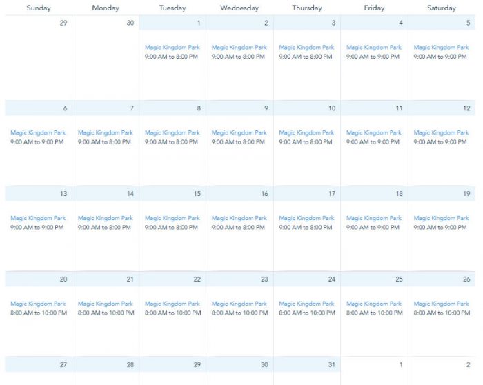 Finally, Magic Kingdom is also getting its hours extended from 9AM to 8PM to 9AM to 9PM for the following dates: