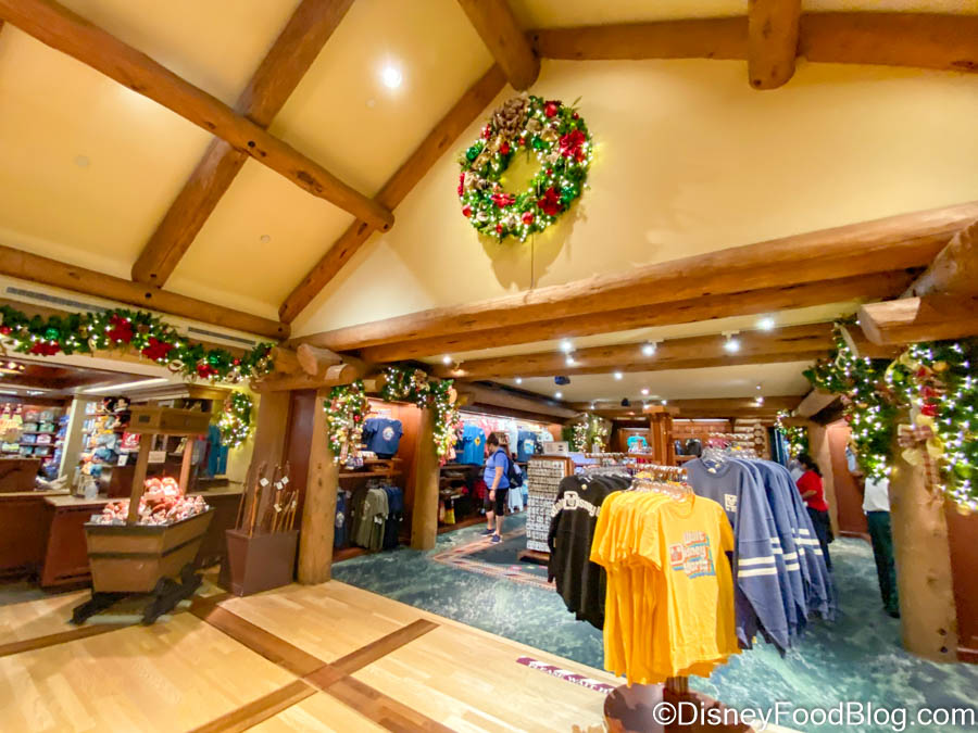 For our last stop, we went to check out the gift shop, Wilderness Lodge Mercantile, to see if there was anything new. Christmas decorations had arrived here as well!