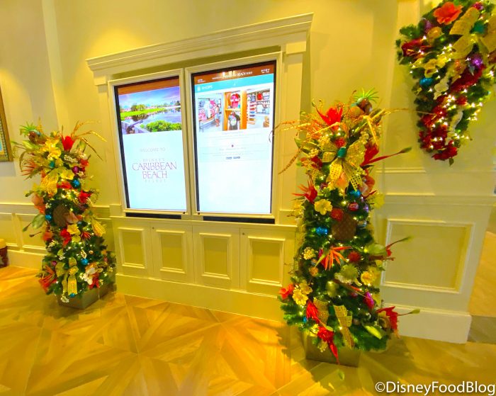As holiday sweeps across Disney World, the resorts are also getting decked out in festive decorations! Over at Disney’s Caribbean Beach Resort, you can step into the tropics for Christmastime with all the wreaths, and garlands around the lobby!