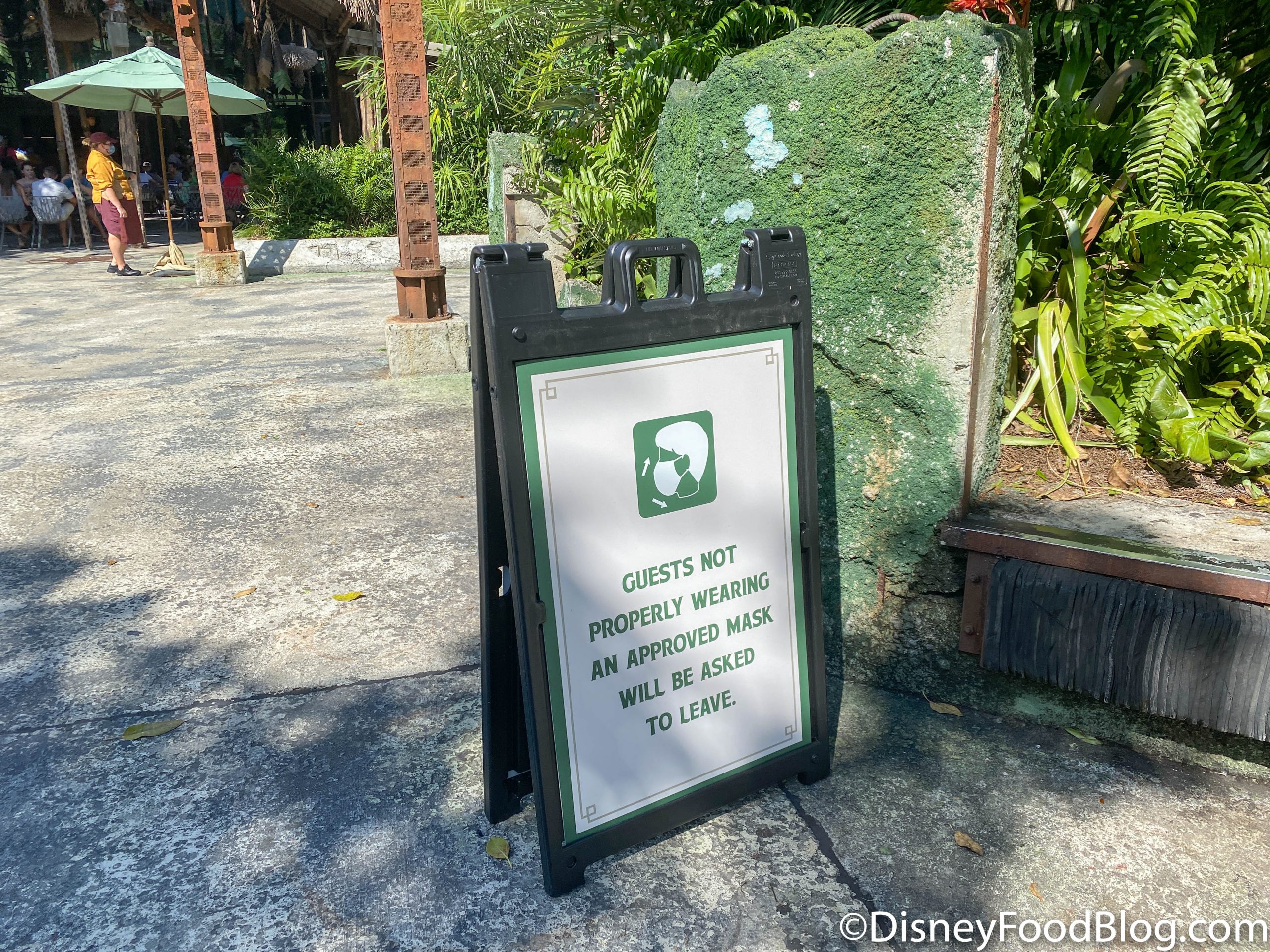 As we mentioned, Disney World’s face mask policy has been evolving since Disney Springs first reopened back in June. Periodically, we see updated signage or announcements that alter the face mask rules and expectations.