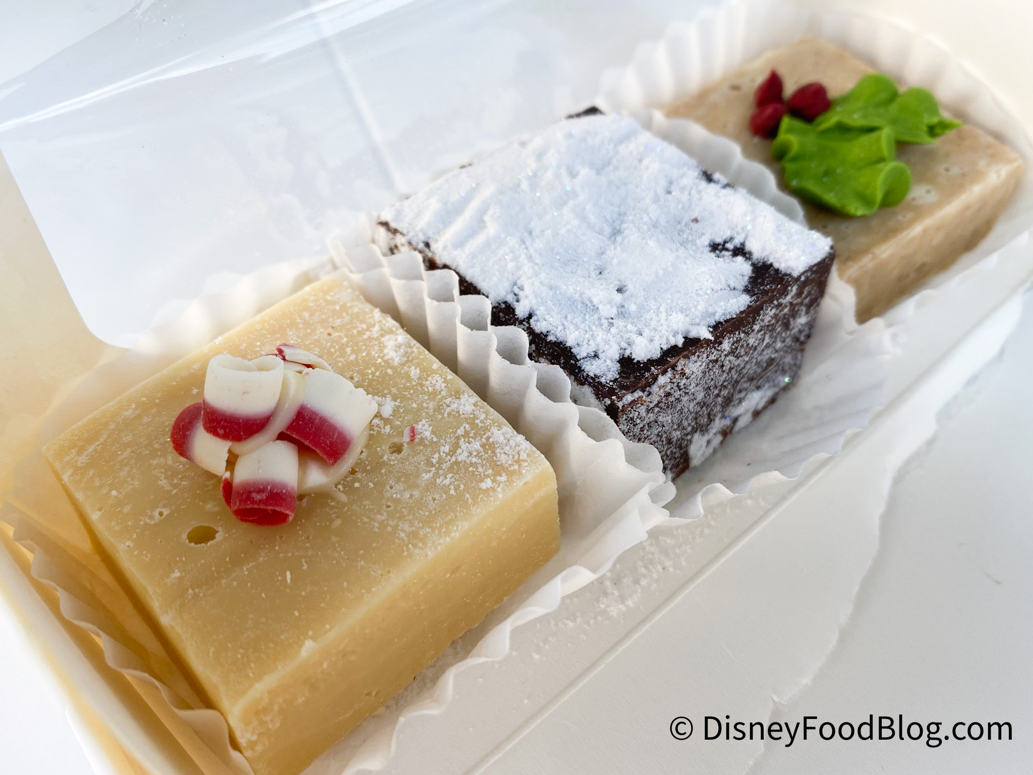 The Trio of Holiday Fudge comes in at a slightly high price of $8.99, and it joins the new Chocolate Crinkle Cookies and plant-based Peppermint Brownie for some serious seasonal snacking at the Beach Club Marketplace.