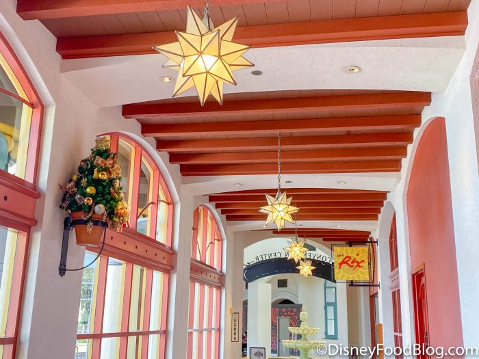 Before we even entered, we saw all of the beautiful lights and some holiday decor near this spot. We’ve truly loved seeing the Disney hotels get in the holiday spirit.