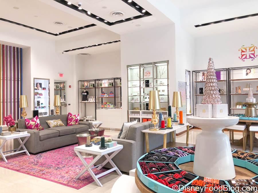 Inside, you’ll find shelves upon shelves of fun accessories, as well as this gorgeous sitting area.