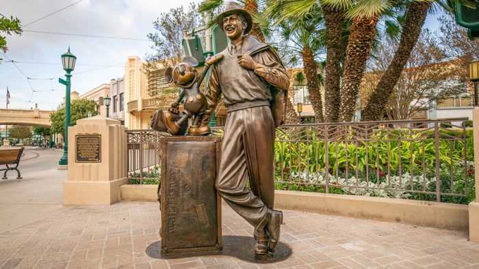 Disneyland Park is currently closed, so guests can’t take a look at this restored statue just yet, but they CAN take some awesome selfies with another figure over in Disney California Adventure Park when Buena Vista Street opens tomorrow! The Storytellers statue, which features a 1920s-era Walt in a fedora and traveling attire — just off the train from Missouri and ready to realize his dreams with his pal, Mickey — has also been restored!