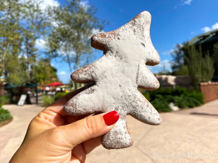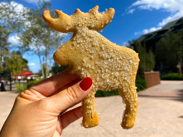 But you can’t go wrong with classic holiday spices like cinnamon, nutmeg, and ginger, right? So we had to try two returning “spicy” cookies we spotted at Disney World: the Gingerbread Pine Tree Cookie and the Spiced Moose Cookie. These are two cookies with super fun shapes!