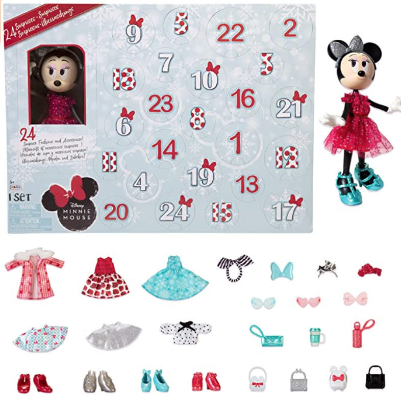 The Minnie Mouse Fashion Dolls Advent Calendar is ICONIC, to say the least! It includes a 10″ Minnie doll and 24 accessories advent-style!