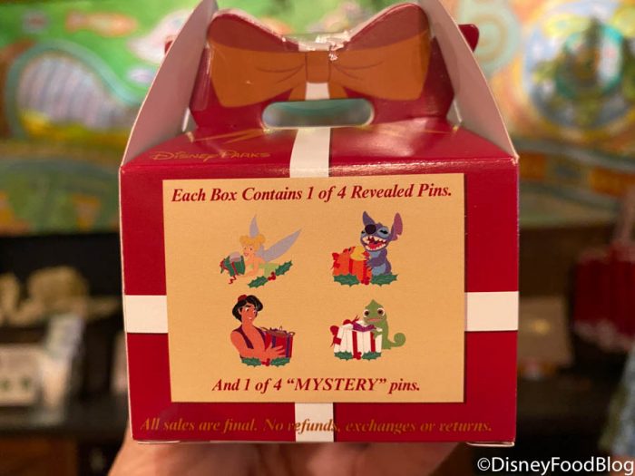Each box contains the revealed pin and a mystery pin. You can grab Tink, Stitch, Aladdin, or Pascal, each with festive gift boxes in hand. You can grab a box for $17.99.