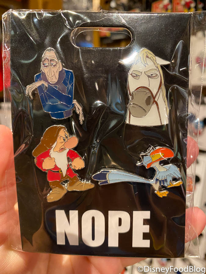 Here at DFB, we are major fans of the meme pin sets. And now we’ve spotted the Nope Pin Set. This features Anton Ego, Maximus, Grumpy, and Zazu giving us their best disgusted faces. So funny! This set is $24.99.