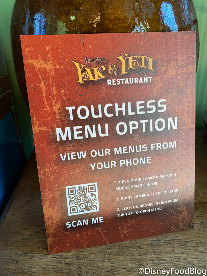 Although the new menu changes had not arrived yet while we visited the park, Yak and Yeti had a new placard for guests to check out the menu!