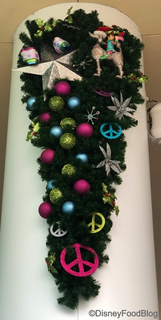 We already spotted Pop Century’s GIANT Christmas tree yesterday. But today, while strolling around through the years, we found TONS of more holiday cheer!